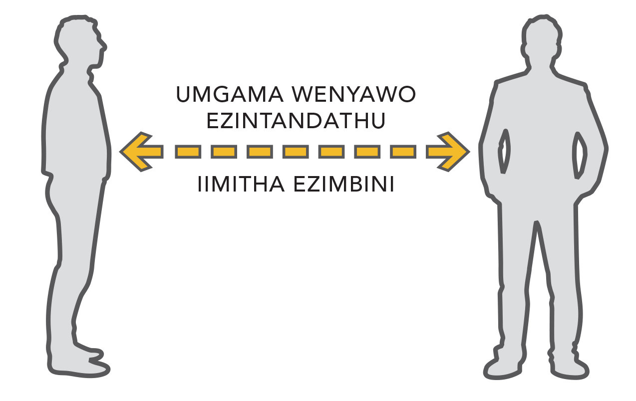 Indlela esebenzayo yokunqanda ukusasazeka kokugula kunye nokusuleleka kukugcina umgama kwabanye-yengeza kuwe umgama ngabom phakathi kwabantu ababini okanye abangaphezulu.